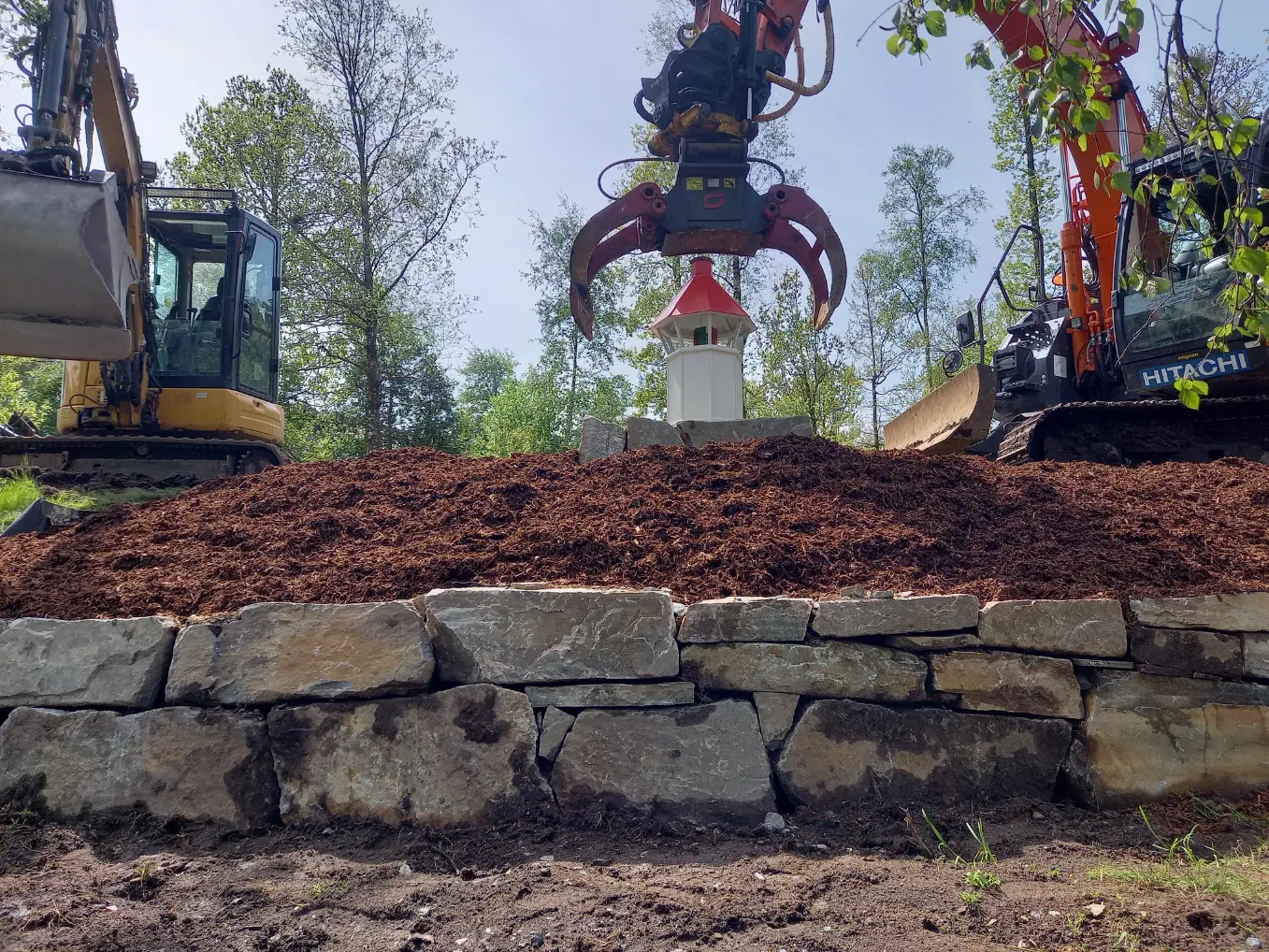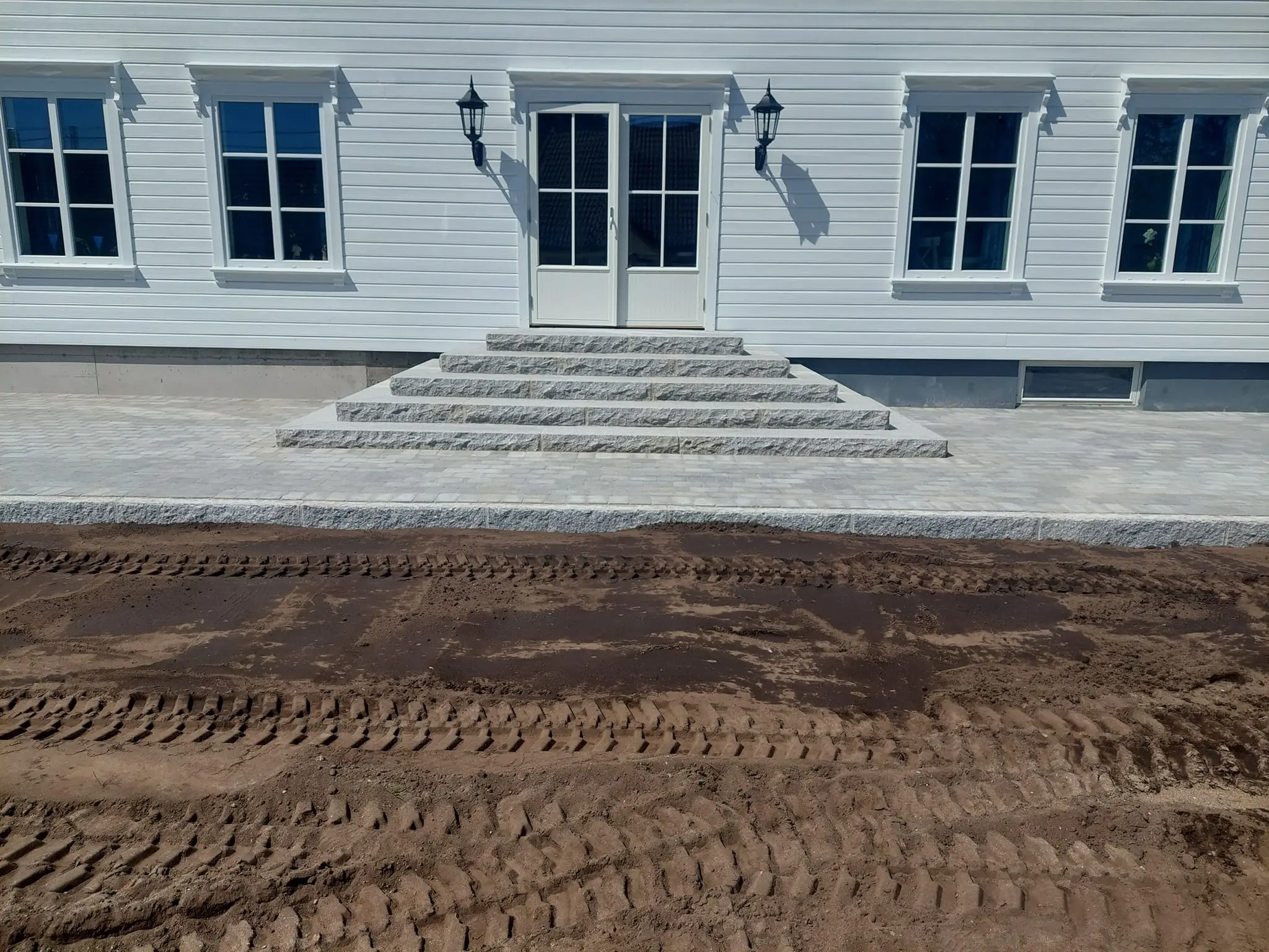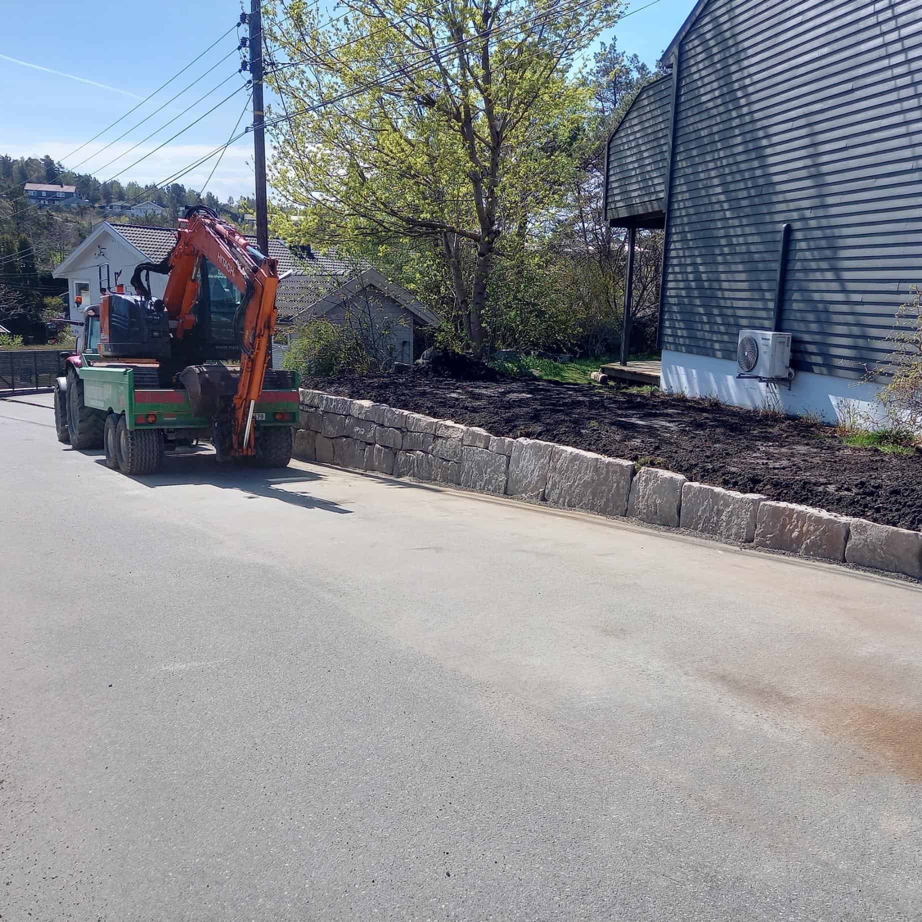 Ja, vi utfører alt fra første spadetak til siste finpuss. Det inkluderer mur, grunnarbeid, terrengtilpasning og anleggsgartnerarbeid.